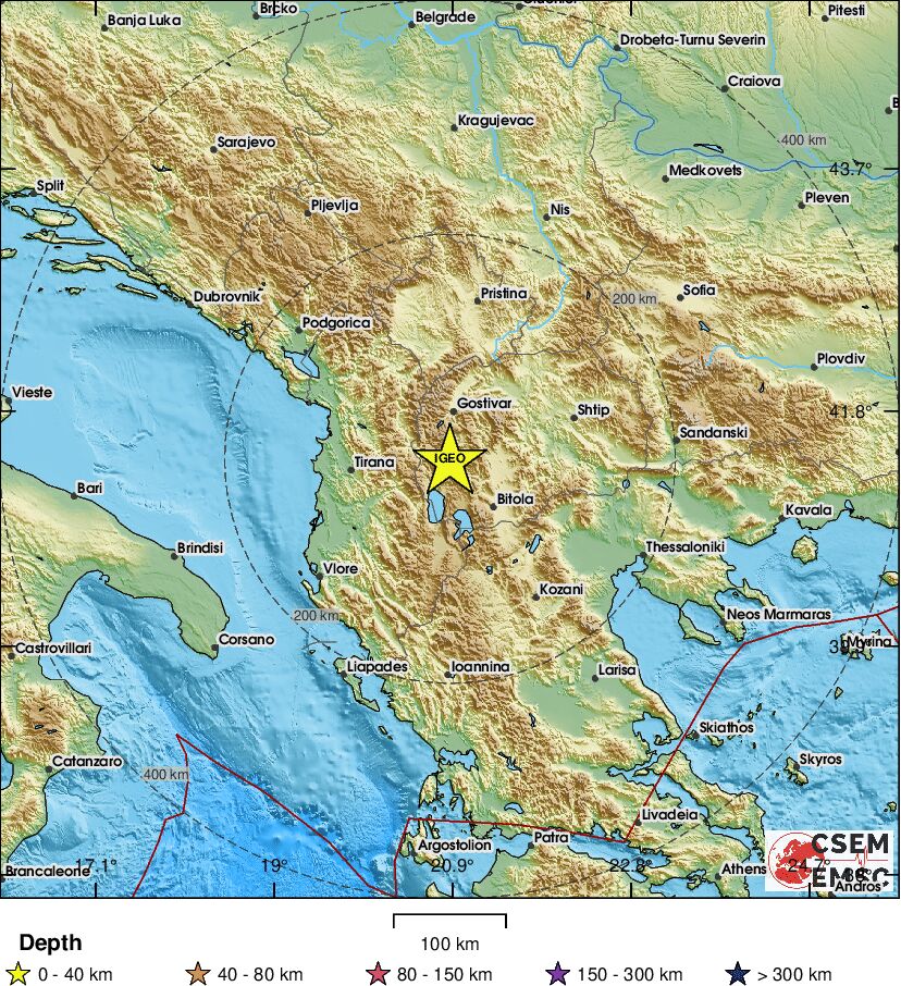 Графички приказ во прилог на Европско-медитеранскиот сеизмолошки центар: